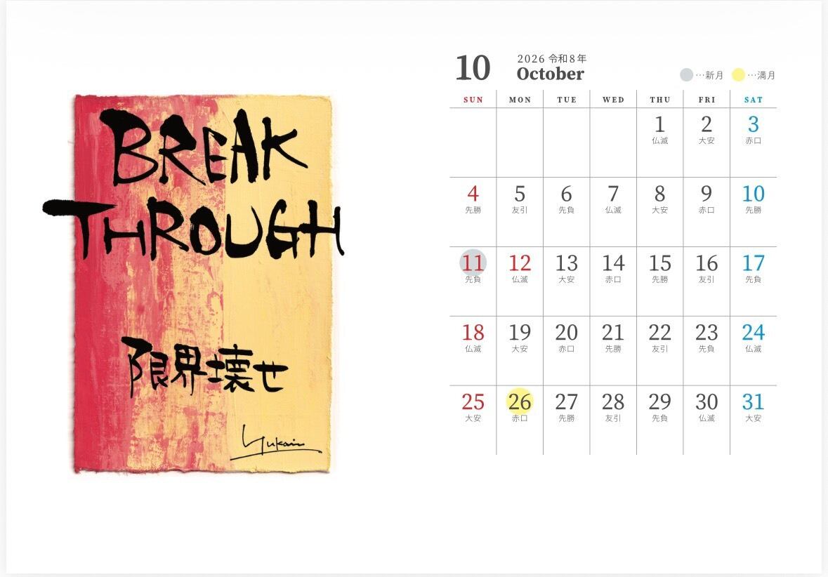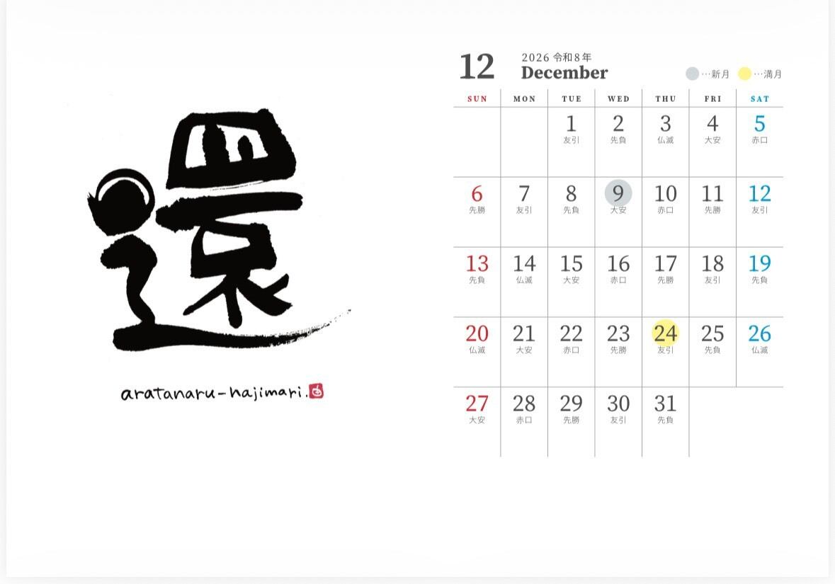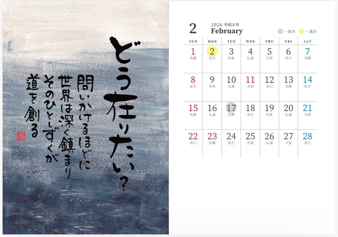 コトバペアリングコーヒーでもお楽しみいただいている、筆文字作家ゆかりんの2026カレンダー「HOME」です。