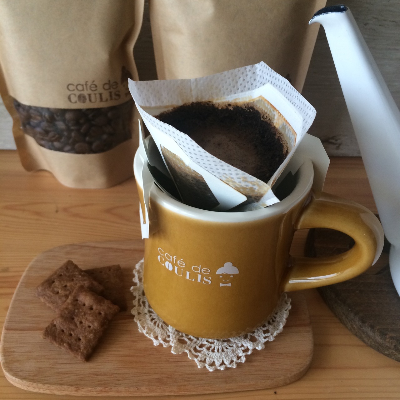 カップの上にセットして粉を入れてお湯を注げば、