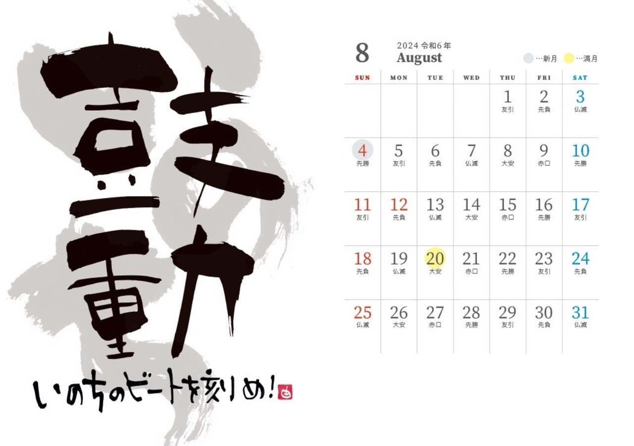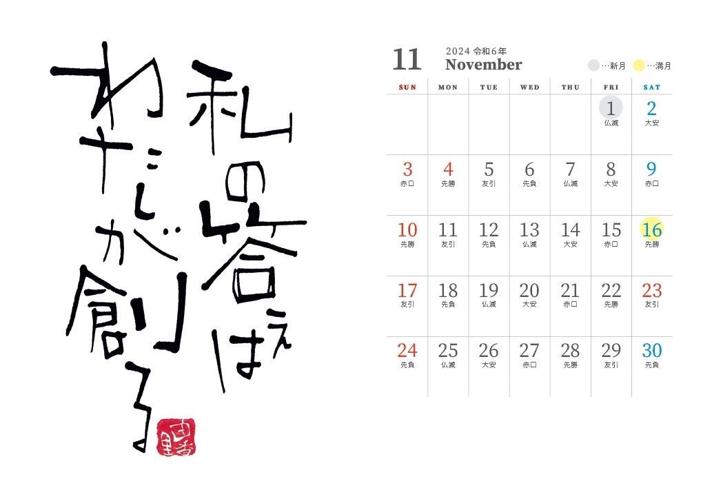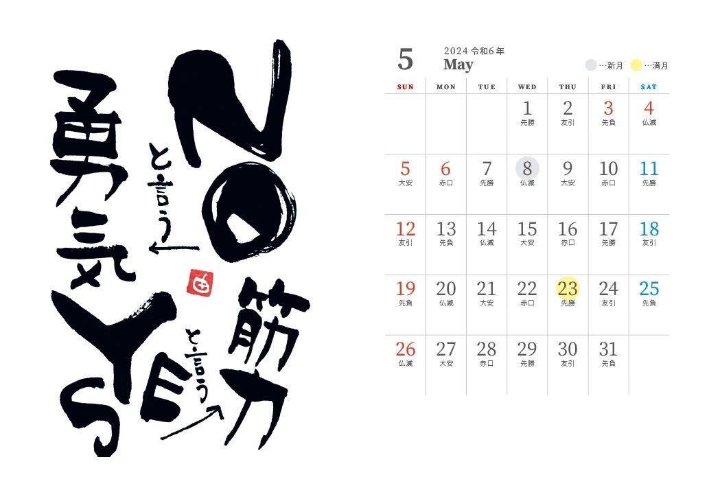 ●新月満月・六曜表記付き